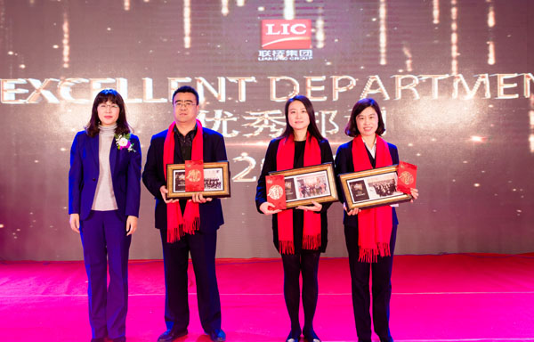 年會第一項,由集團公司董事慕衛(wèi)波宣讀表彰先進決定,莊嚴(yán)隆重的頒獎典禮正式開場。雄壯渾厚的音樂回蕩在會場大廳,震撼人心;鏗鏘有力、滿含深情的頒獎詞,高度凝練呈現(xiàn)了2016年度“卓越貢獻獎”、“明星部門”、“先進部門”、“優(yōu)秀部門”、“發(fā)展部門”等獲獎部門的閃光點;閃耀著金屬色光芒的頒獎畫面,引起強烈的視覺沖擊,將榮耀盡顯其中。先進個人身披紅圍巾,精神抖擻,喜氣洋洋地依次上臺領(lǐng)獎,集團領(lǐng)導(dǎo)班子集體頒獎。骨干部門與優(yōu)秀員工,支撐了公司各個事業(yè)版塊的發(fā)展,代表著聯(lián)橋人的艱辛和擔(dān)當(dāng),折射出聯(lián)橋人的責(zé)任和力量。
