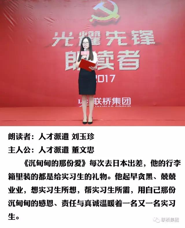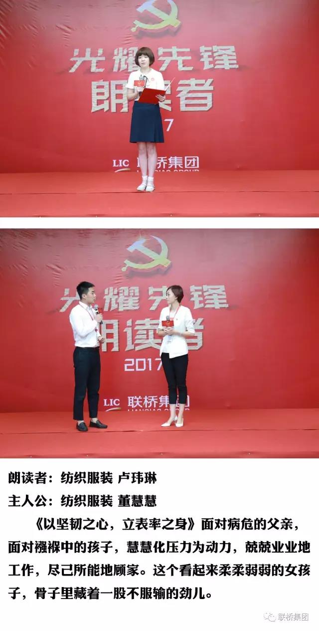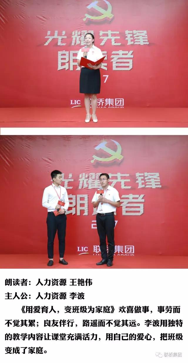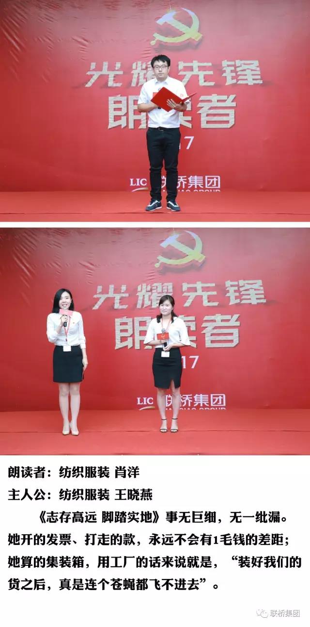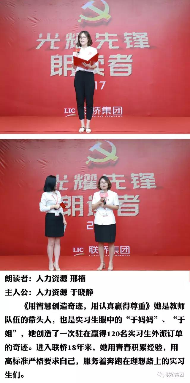 2017年7月26日下午,聯(lián)橋集團黨委舉辦了“光耀先鋒朗讀者”活動,150名黨員齊聚一堂,用《朗讀者》的節(jié)目形式,講述聯(lián)橋光耀先鋒優(yōu)秀黨員的感人故事。集團黨委書記、董事長慕镕鍵,集團董事、塑料新材黨支部書記慕衛(wèi)波,集團黨委副書記宋威麗等領導出席了活動。