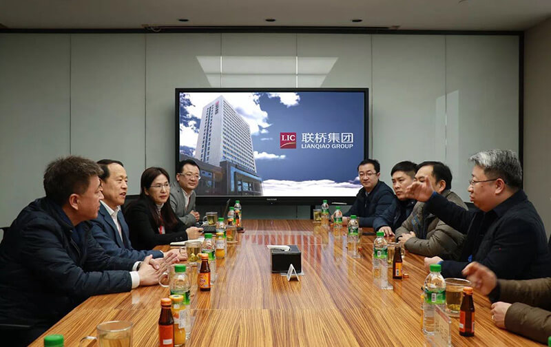 2018年1月18日,韓都衣舍電商集團(tuán)董事長趙迎光一行9人來聯(lián)橋集團(tuán)考察,威海市商務(wù)局局長喬軍、副局長劉繼萍等領(lǐng)導(dǎo)陪同。