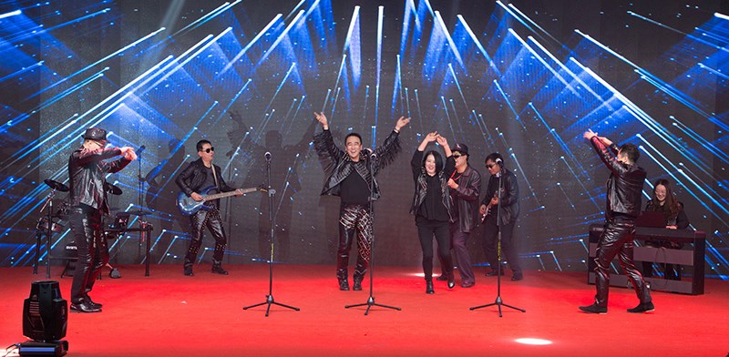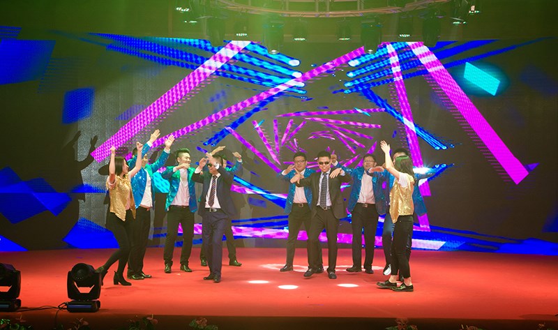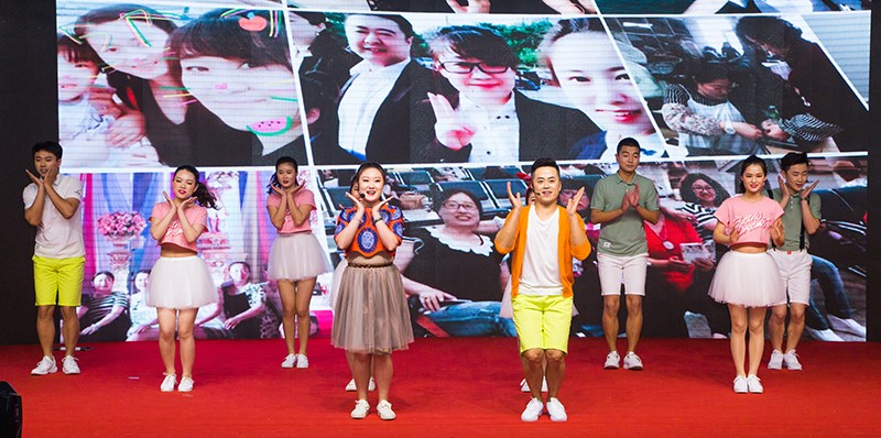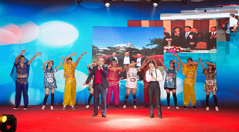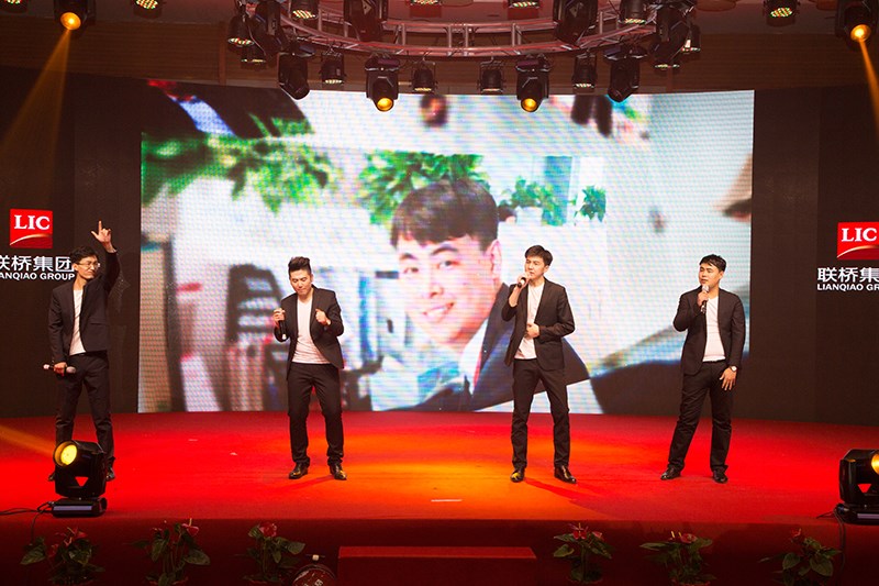 一開場,歌曲《我們不一樣》就點燃了全場,來自集團(tuán)總部4名演唱者,略帶金屬質(zhì)感的嗓音,深情唱出集團(tuán)20年艱苦創(chuàng)業(yè)中,聯(lián)橋人不一樣的拼搏,不一樣的意志,不一樣的風(fēng)采,不一樣的兄弟情。尤其是當(dāng)1500名聯(lián)橋人揮舞著旗幟拍攝全家福的壯觀畫面呈現(xiàn)時,身為聯(lián)橋人的驕傲和自豪感油然而生。紡織服裝行業(yè)的情景劇《感覺自己棒棒噠》,表演輕松愉悅、風(fēng)趣幽默,歌聲傳達(dá)出紡織服裝行業(yè)的美女們,在緊張工作之中保持飽滿的精神狀態(tài)和積極樂觀的心態(tài),更表現(xiàn)著聯(lián)橋人追逐時尚,逐鹿世界秀場的風(fēng)采。塑料新材行業(yè)的歌曲《驕傲的少年》青春洋溢,4名帥氣小伙子的堅定歌聲,展現(xiàn)了他們開拓進(jìn)取的精神。人力資源行業(yè)帶來的歌伴舞《天邊》,用渾厚的聲音,闡述著追逐夢想、勇攀高峰的精神;行業(yè)部長們用“聯(lián)橋老兵”精神演繹了《新長征路上的搖滾》,盡顯搖滾的力量,撕裂的吶喊,縱情的釋放,給人以心靈的震撼。在歌舞串燒《蹦沙卡拉卡》中,來自日本上市人力資源公司的CEO松本先生驚喜亮相,用一首《朋友》講述著與聯(lián)橋人的長久友誼。
