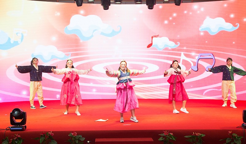 隨著動感的音樂,開場舞《Sugar》熱血豪邁、活力十足,一開場就引得全場矚目,贏得陣陣喝彩。五位主持人舞動著節(jié)拍,閃耀登場,在喜慶歡樂的氛圍中拉開了晚會的帷幕。